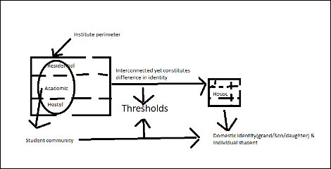 Having presented our thoughts about time, we now turn to space and spatiality. We interrogate how certain identities have been reconfigured, and how the emergence of virtual spaces could pose the possibility of a new norm. COVID-19 was the ‘rupture’, as Stavros Stavrides calls it, in the norm. In the old norm, especially as students of IIT Madras, what we can observe is the separation between the institute and our homes (For most students this is another town/city), and within the institute a difference between hostels and departments. Within the institute, we could observe three interdependent zones – hostel (residential area for the students), academic and residential (residences for professors and support staff); which were mostly meant for the acts of leisure, productivity and leisure respectively. However, in our daily acts this division was not so rigid with both leisure and productivity existed and flowed between the zones albeit to different degrees. The three zones also indicated a social order within the institute, with the hostel zone associated with the student community, the residential zone with faculties and the academic zone acting as the space for interaction between the two with the administration’s oversight. From the perspective of a student in IIT Madras, the spatial identities varied based on these zones. For example, in the hostel zone and academic zone, the students’ interaction with the security guards is on a friendly note. But in the residential zone, especially at night, the security is hostile to the students as it is seen as a location restricted for students. So, crossing the threshold of the academic zone into the residential zone changes the administration’s perception and the student’s identity. Outside the campus, our spatially derived identity as a student from the student community of IIT Madras takes a backseat. This is especially true when students return home for vacations. Their identity is further subverted in favour of the domestic identity assigned by the social order in the house. When we take online classes at home, it is harder to identify with another classmate because of the difference in the identities that we derive from our spaces.